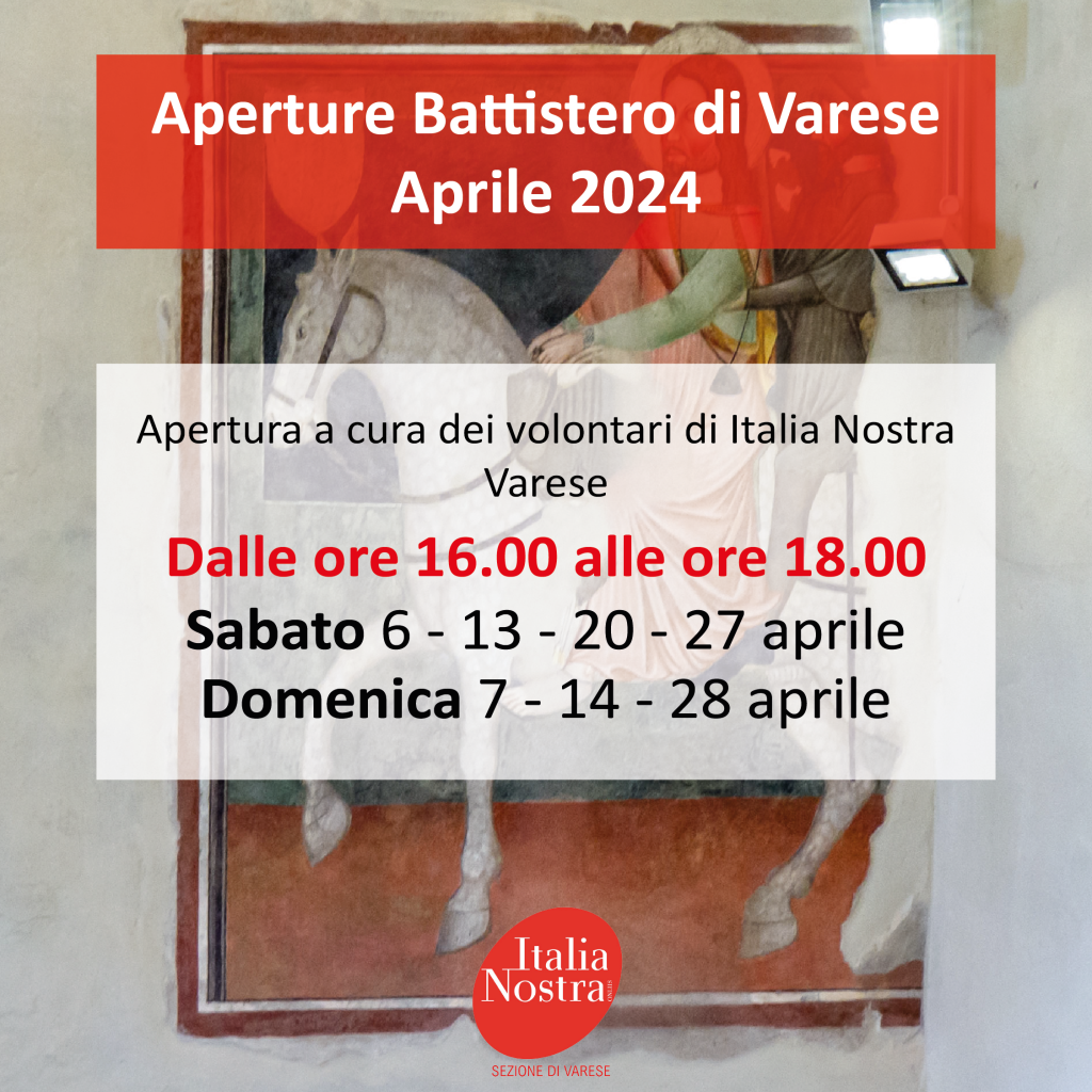 Il battistero di Varese sarà aperto nel mese di aprile, a cura dei volontari di Italia Nostra Varese, nei seguenti giorni ed orari per visite libere: