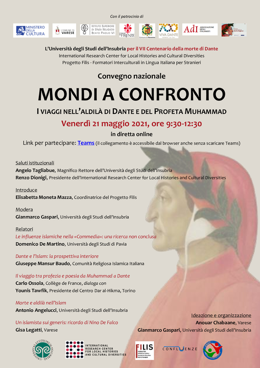 𝗩𝗲𝗻𝗲𝗿𝗱𝗶̀ 𝟮𝟭 𝗺𝗮𝗴𝗴𝗶𝗼 dalle 𝟵.𝟯𝟬 alle 𝟭𝟮.𝟯𝟬, a 700 anni dalla morte di Dante Alighieri, Università degli Studi dell’Insubria organizza il convegno nazionale «𝗠𝗼𝗻𝗱𝗶 𝗮 𝗰𝗼𝗻𝗳𝗿𝗼𝗻𝘁𝗼. 𝗜 𝘃𝗶𝗮𝗴𝗴𝗶 𝗻𝗲𝗹𝗹’𝗮𝗹𝗱𝗶𝗹𝗮̀ 𝗱𝗶 𝗗𝗮𝗻𝘁𝗲 𝗲 𝗱𝗲𝗹 𝗣𝗿𝗼𝗳𝗲𝘁𝗮 𝗠𝘂𝗵𝗮𝗺𝗺𝗮𝗱».