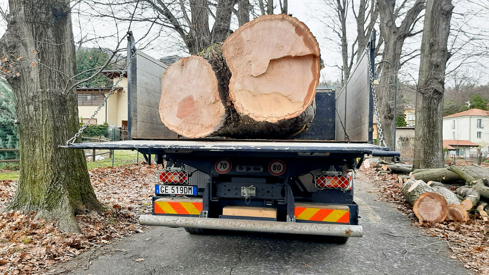 Questa mattina un esemplare di quercia secolare dal diametro di circa 2 metri e dall’altezza di circa 30 metri è già stato abbattuto. Secondo l’esame di massima di un agronomo l’esemplare non aveva patologie particolari e non risulta nessuna autorizzazione all’abbattimento da parte dell’ente parco Campo dei Fiori, di cui il viale fa parte.