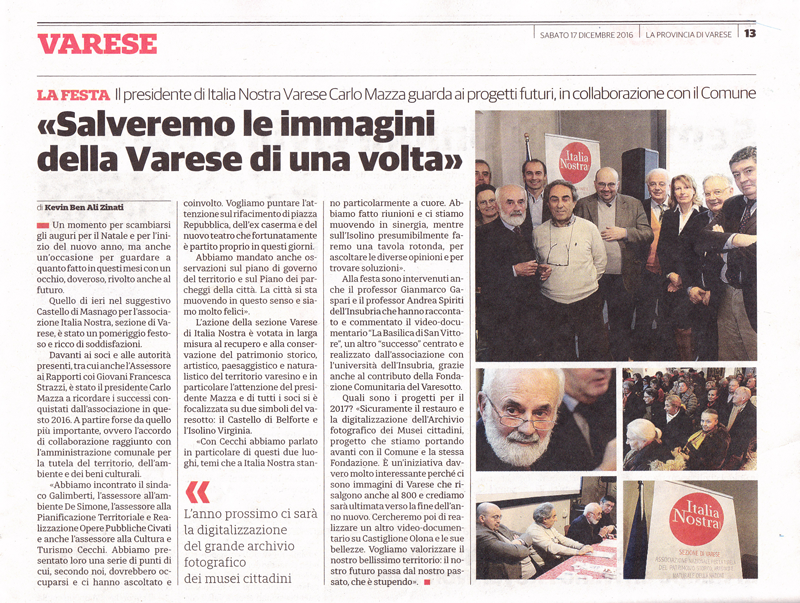 ItaliaNostra (sezione Varese): festa di fine anno e rendiconto delle attività svolte nel corso del 2016