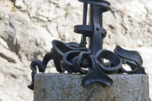 Il manufatto era stato progettato dall’arch. Sommaruga nel 1910 a completamento dei lavori della funicolare per il Sacro Monte, per agevolare la salita al Santuario collegando le attuali due vie Fincarà e Sommaruga. Pur trattandosi di un’opera meramente funzionale era caratterizzata da elementi decorativi che per l’epoca costituivano una novità. I ferri battuti del Mazzucotelli sono dei capolavori, che andavano salvati e valorizzati.