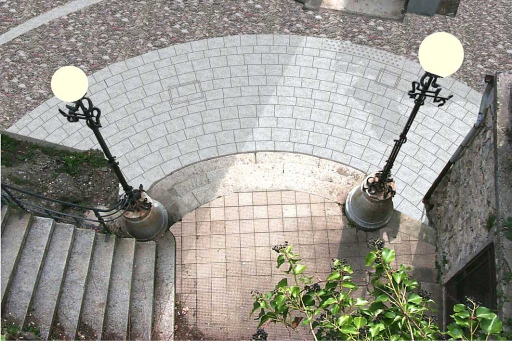 Si prevede quindi di mettere in opera questi 3 pali con corpo illuminante a sfera uguali agli altri 4 previsti sulla scalea in sostituzione di quelli esistenti.