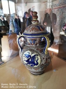 La visita culturale del 9 Marzo 2019, organizzata dalla sezione di Varese di Italia Nostra, è iniziata a Ganna, nell’antica Badia di S. Gemolo (fu fondata nel 1095), dove nei primi anni duemila è stato allestito il Museo della ceramica di Ghirla, di cui pochi sanno l’esistenza, anche tra coloro che di solito partecipano agli eventi organizzati nella Badia. I pezzi esposti sono la residua testimonianza della ceramica artistica prodotta nella fabbrica della famiglia Ghisolfi, che chiuse i battenti nei primi anni Cinquanta del secolo scorso, portando con sé i segreti del famoso “bleu di Ghirla”, che ancora brilla dietro il vetro delle teche, come se vasi, piatti, cestini fossero appena usciti dalle mani dell’artista.
